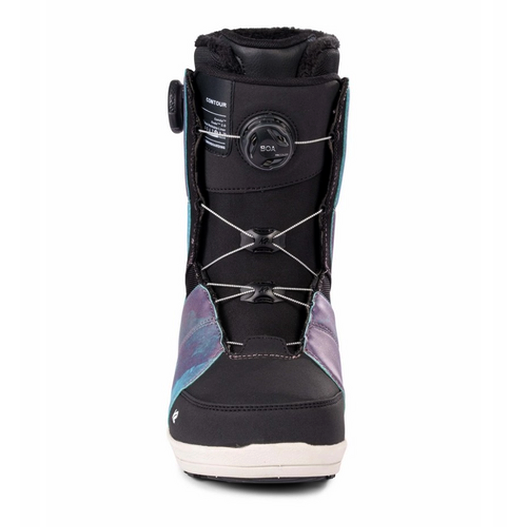 For a good reason, the Contour has long been the favorite boot of the K2 women’s team. The mid-to-stiff flexing Contour is a no-bull, feature-forward snowboard boot that prioritizes performance and looks damn good doing it.