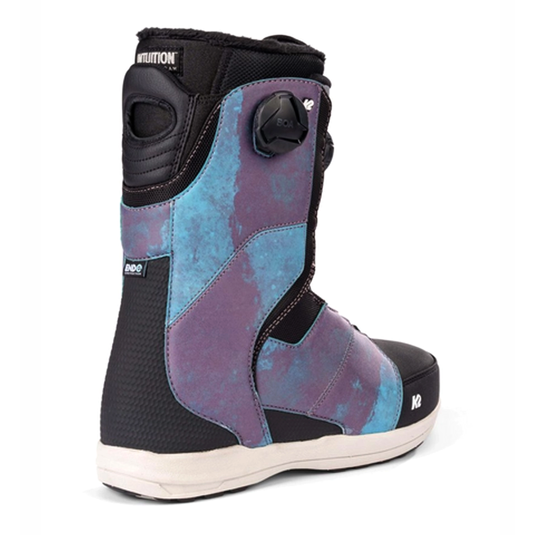 A K2 Snowboarding exclusive, Endo™ Construction, allows us to alter a snowboard boot’s flex, response, and rebound without adding extra materials (extra materials = excess weight). By replacing additional materials with an injected heel counter, adding an extra rebound is as easy as a formula change. In addition, it helps us to provide a more consistent flexing, longer-lasting snowboard boot.
