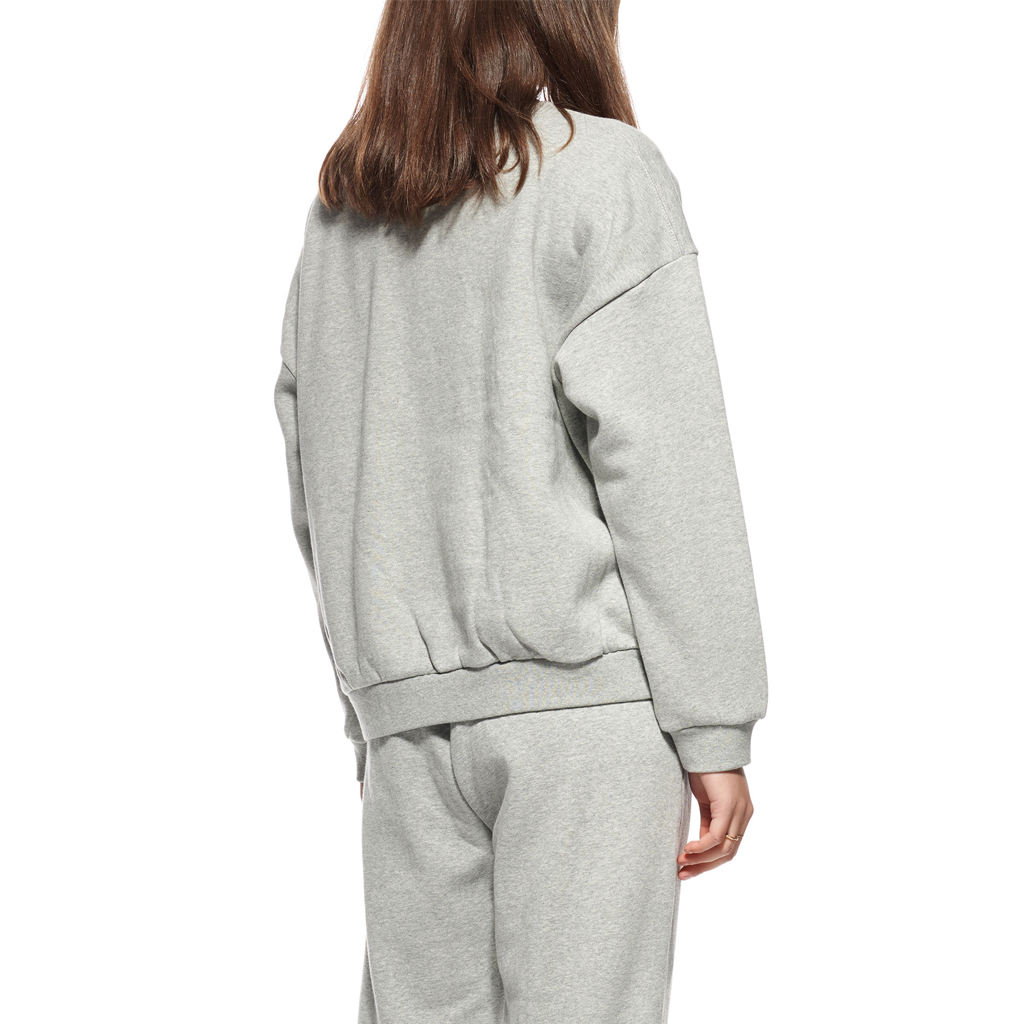 The Stussy Sport OS Crew in Grey Marle is a cotton brush back fleece crew sweater features 1×1 cotton/elastane rib neckband, sleeve cuffs & hem band with CF chest satin stitched embroidery.